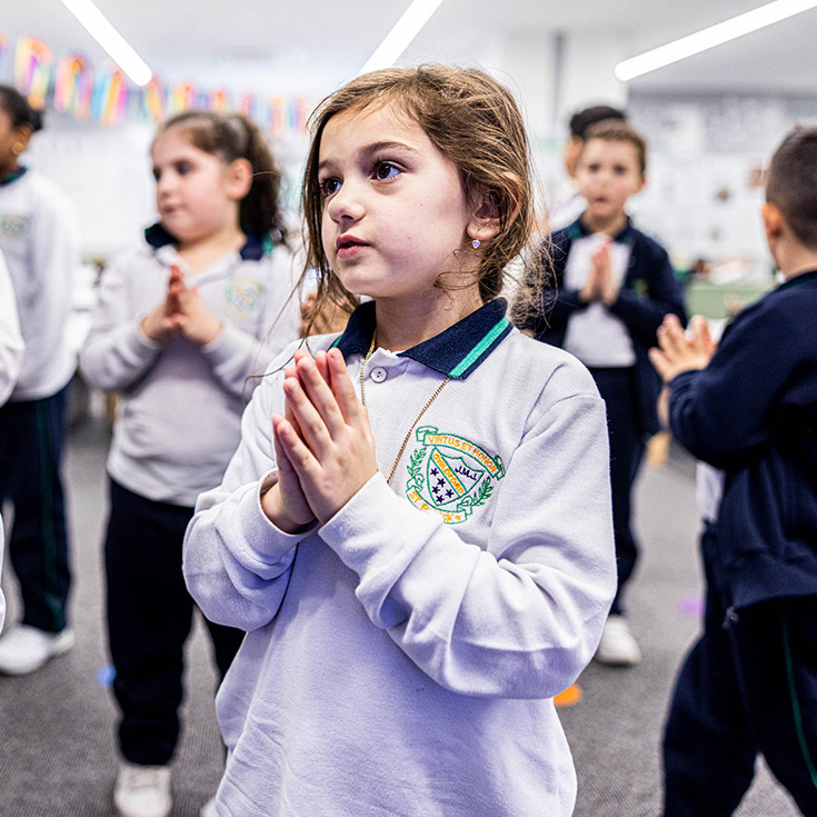 We ensure that students come to know Jesus Christ through the promotion of Catholic tradition and teaching. Faith experiences are woven throughout the life of the school and school values, and are realised within the Religious Education program, liturgy, prayer, reflection, religious symbolism, Feast Days and social justice activities to reach out to those most in need. Our school community prays the Angelus (traditional midday prayer) together each day. In partnership with our local parish, there are also many chances to attend Mass.